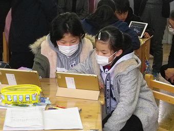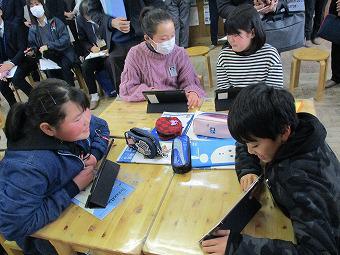 3年生が算数や理科の時間に、タブレットを使いながら授業をしていました。授業支援としてICTを積極的に活用しています。