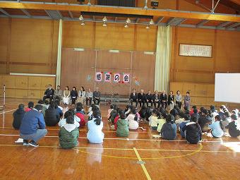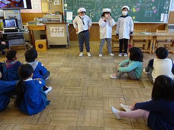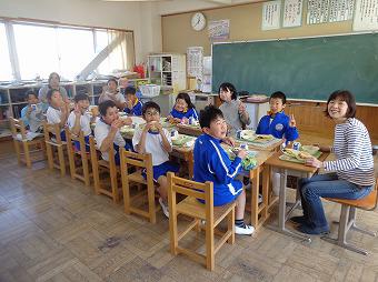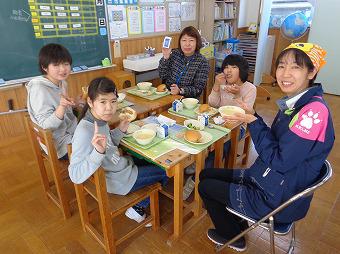 給食の用意をしてくださる給食ボランティアの皆さん、授業支援をしてくださるどんぐりの会の皆さんに感謝の思いを込めて、子ども達との会食を行いました。本当に一年間、お世話になりました。ありがとうございました。