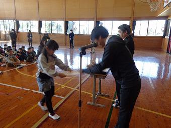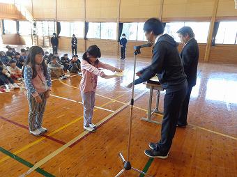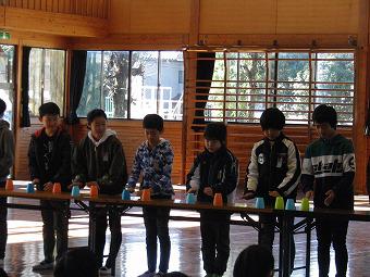 業間の時間に大縄記録会と全校表彰を行いました。2学期の末からなかよし班で練習してきた大縄の総決算です。目標を決めてこれまで一生懸命練習してきた成果を思う存分に発揮し、今回、どの班も目標及び第1回目の練習回数を大幅に上回った素晴らしい成績を納めました。この大縄記録会で目指しているところは、協力、思いやり、友情、そして、みんなでひとつのことをやり遂げた成就感、その先にある自尊感情の向上です。今日、そのねらいを見事達成し、全員の子が満足そうな笑顔を浮かべていました。