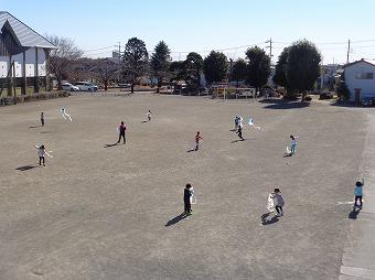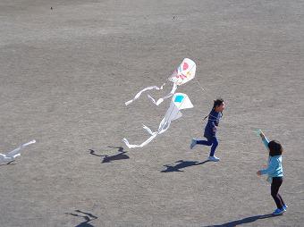 1年生が生活科の学習で凧揚げを行いました。風が強すぎて、くるくる回ってしまうなど、手こずっていましたが、どの子も夢中になって凧揚げをしていました。