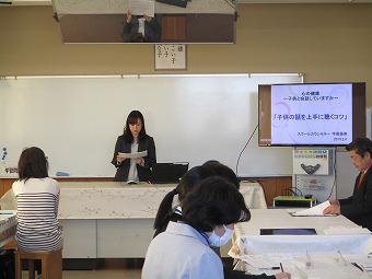 南押原中、南押原小、南保育園、楡木小学校の教職員、PTAが集まり、南押原小学校医、鹿沼市市民健康課の方をお迎えして、本校で南押原地区地域学校保健委員会を開催しました。三校に関わってくださっているスクールカウンセラーの方から「子どもの話を上手に聴くコツ」という題目で講話をいただいたり、班別協議をしたりしながら、地域みんなで子どもの心身の健康を考えました。最後に鹿沼市市民健康課の取組を紹介いただき、学校医の方から取組に対するご指導をいただきました。短い時間でしたが、とても有意義な話し合いをもつことができました。
