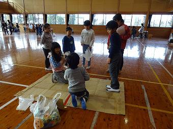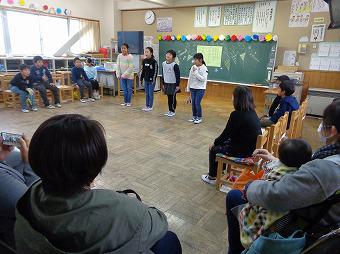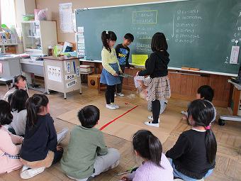 南保育園の年長園児が来校し、1,2年生と楽しく交流しました。自己紹介の後、1年生が小学校の生活を演技を交えながら紹介しました。その後体育館に移動し、2年生が自作のおもちゃで保育園児をもてなし、最後に歌をプレゼントしました。保育園児も楽しそうでしたが、1、2年生も、頼れるお兄ちゃん、お姉ちゃんとしての役割をとても楽しそうに行っていました。
