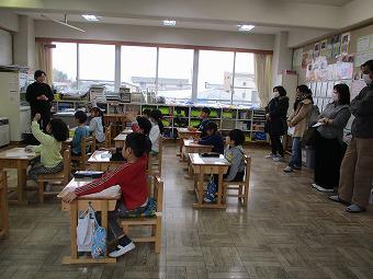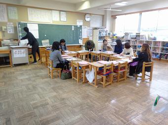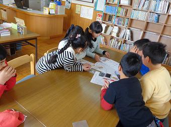 4年生が外国語の時間に場所の名前について学習しました。校舎内を回りながら、その場所を表す英語を学びます。例えば図工室は「arts and crafts room」職員室は「teacher's office」図書室は「library」といった具合です。どの子も、身近な場所の英語表記に興味津々でした。