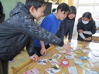 健康委員会でお楽しみ会を行いました。感染症について学べるかるたを使ってかるたとり大会を行いました。知っている病気の名前が出てくると自分が取るぞ! という意気込みで楽しんでいました。