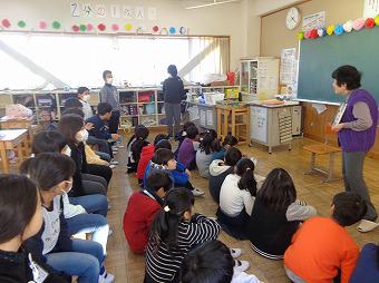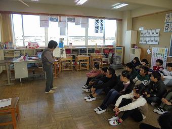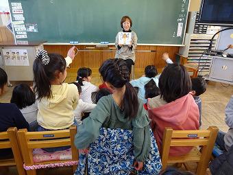 KLVの方が3,4年生に読み聞かせをしてくださいました。「花さき山」の絵本です。3年生は最近、そのお話で道徳をしたばかりだったので、そのときの学習を踏まえながらも、さらにKLVさんの迫真に迫った口調に引き込まれていました。読み聞かせ後、4年生の児童が「とてもおもしろかったので、自分でも絵本を読んでいきたいです。」と感想を述べていました。
