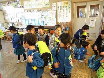 一斉下校時に、班長の引き継ぎを行いました。これまで1年間、みんなを無事故で連れてきてくれた今年の班長さんに、新班長さんがねぎらいと感謝の言葉を述べました。これまでの班長さんはやり遂げた成就感を、新班長さんは新たな決意を胸に刻んだようでした。