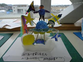 2年生が図工で創作を行いました。「ピコリン星の夢のステージ」という題名から思い描く世界を廃材等を利用して作りました。どの子も想像の翼を思う存分広げて、素敵な世界を創造していました。