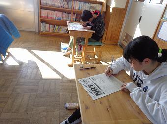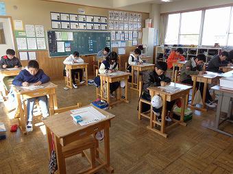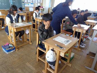 6年生が1年間の学習の総決算として学力テストに臨みました。どの子も真剣な表情で問題に取り組んでいました。