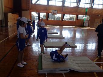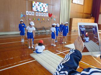 3年生が体育でマット運動を行いました。側転、後転の学習です。自分のレベルに合わせて、側転や後転を練習しました。途中、先生にIPadで自分の様子を撮ってもらい、それを見ながら、自分にはどこが足らないのかを確認して、さらに練習に励んでいました。