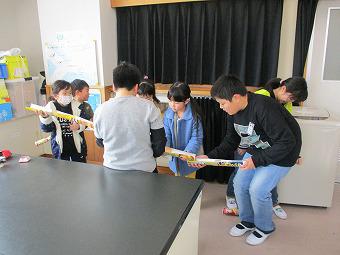 2年生が生活科の時間に「おもちゃ作り」を行いました。ビューンロケットやコップロケットなど、ダイナミックで楽しい手作りおもちゃで、全員が大盛り上がりでした。遊び道具を手作りし、自分達でルールを決め、遊ぶことでで、創造性や協調性を養っています。