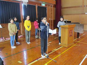 今年度お世話になった地域ボランティアの方へ感謝の想いを伝える「感謝の会」を行いました。KLVの方、交通安全ボランティアの方、給食ボランティアの方、スクールガードリーダーさん、南押原駐在所の方など、多くの方にご出席をいただき、代表児童が感謝の言葉を述べ、各学年がそれぞれの感謝の思いを込めた歌唱や演奏などを披露しました。ボランティア代表の方からは、「どの学年も素晴らしい発表で感謝の思いが伝わってきました。」という嬉しいお言葉をいただきました。楡小ハッピーリレー、地域の方との幸せなつながりを改めて確認できたひとときでした。