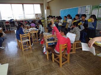 3年生は理科「おもちゃランドへようこそ」の授業で作成したおもちゃを2年生と一緒に遊ぶことをめあてとして、2年生は生活科「明日へのダッシュ」で、3年生へのインタビューをめあてとして、3年生と2年生が合同授業を行いました。どちらの学年もそれぞれのめあてに従って、楽しく、充実した学習をすることができました。