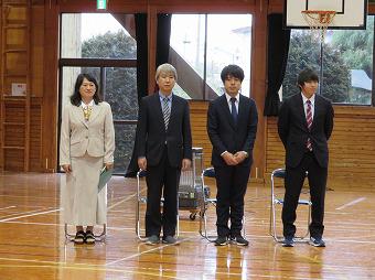 新任式、始業式を行いました。定期異動で本校にいらっしゃった4名の先生に、代表児童が、心のこもった歓迎の言葉を述べ、全員で「世界でひとつだけの花」を歌いました。