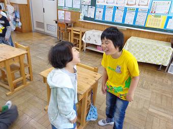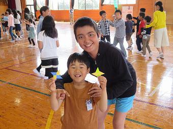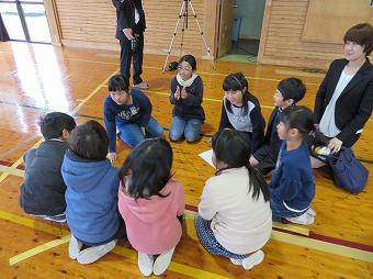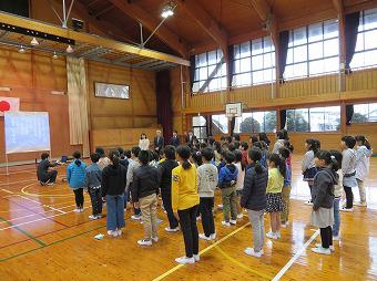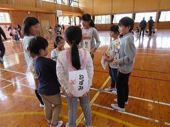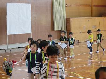 児童会主催で1年生を迎える会を行いました。4年生みんなでの歓迎の言葉のあと、5、6年生が考えたじゃんけんゲームやジェスチャーゲーム、2、3年生からのプレゼントなどで、1年生との楽しい交流の時間を過ごしました。