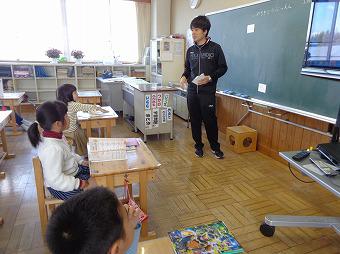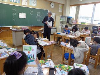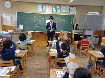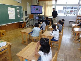 3年生が外国語活動を行いました。最初に担任とあいさつや、時刻を尋ねられて答えるやりとりをしました。続いてジョリーフォニックスの復習、そして今日の新しいアルファベット、「d」の学習をしました。どの子も楽しそうに、一生懸命英語を学んでいました。