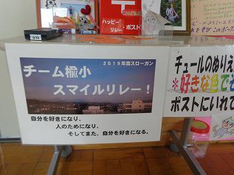 今年度のスローガンは「チーム楡小スマイルリレー!」です。昨年度から始まった幸せの連鎖をさらに続けていきます。