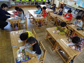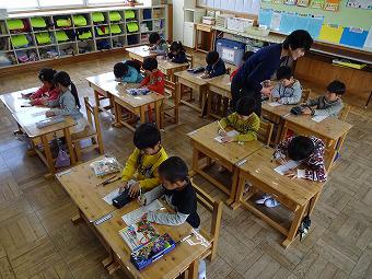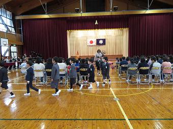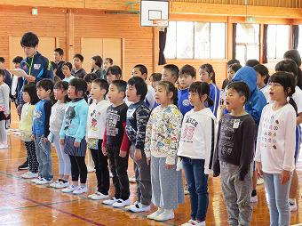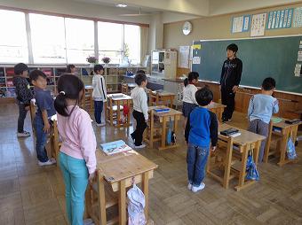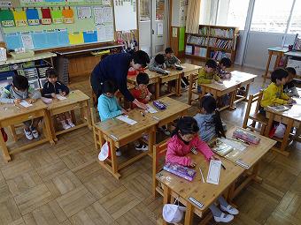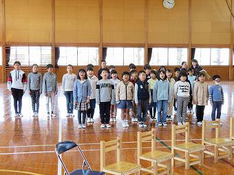 業間に入学式の練習を行いました。14名のかわいい入学生を、心をこめてお迎えする準備です。どの子も一生懸命練習に取り組んでいました。明日の入学式が楽しみです。