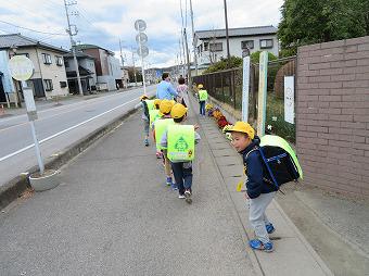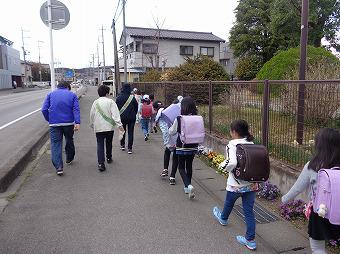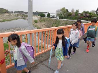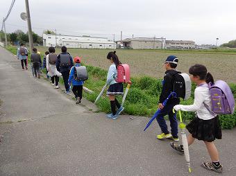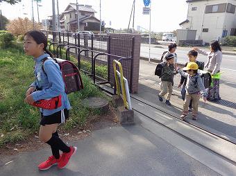 藤江地区からは今年度3名の1年生が入学しました。どの子も重いランドセルを背負って、長い道のりを、一生懸命歩いて登校しています。上学年の子は、1年生のペースに合わせたり、励ましたり、手をつないであげたり、優しく1年生をサポートしています。地域の方、保護者の方も温かく見守ってくださっています。