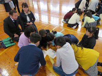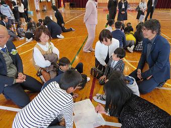 入学式後、在校生と入学生の対面式を行いました。保護者の方も交えて、登校班ごとに集まり、登校の約束などを話し合いました。在校生は優しく入学生を迎え入れていました。