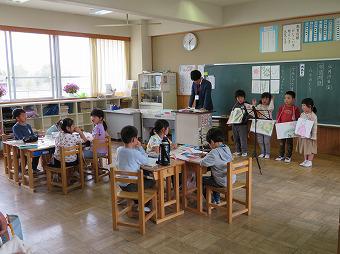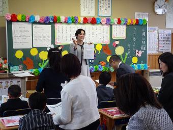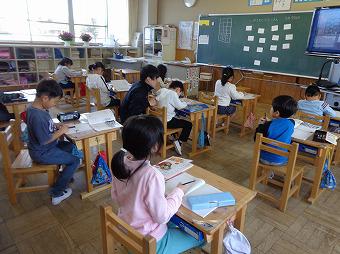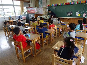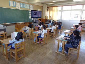 新年度が本格的に始動しました。各学年とも、落ち着いて朝の会を行っていました。1年生はお道具箱の整理の仕方を学んでいました。
