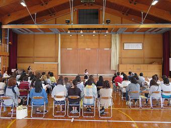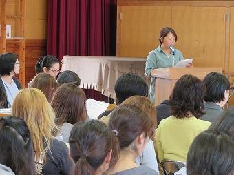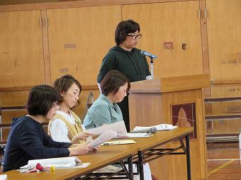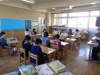 業間の時間に、今年度お世話になる図書支援員さん、ALTの先生との出会いの会を行いました。図書支援員さんからは、本を好きなって、たくさん読んでください、とあいさつがありました。ALTの先生からは、今年も英語を一緒に勉強していきましょう、と英語であいさつがありました。全体会後、図書委員が図書支援員さんにあいさつしました。これから一年間、どうぞよろしくお願いします。