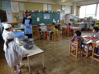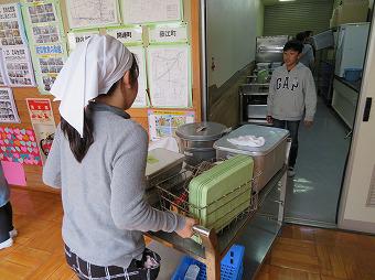 健康委員会の給食後の片付けの仕事が本格的に始まりました。どの子も自主的に一生懸命取り組んでいました。