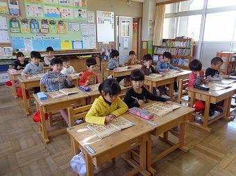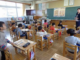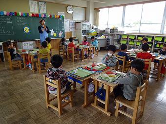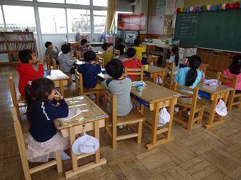 2時間目は、1年生2年生どちらも算数の学習を行いました。1年生にとっては初めての算数です。1年生はかずのかぞえ方、2年生は表のかき方を学習しました。どちらの学年も活発に意見を出しながら、一生懸命学んでいました。