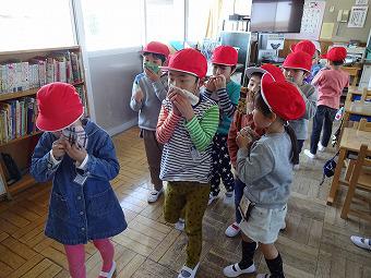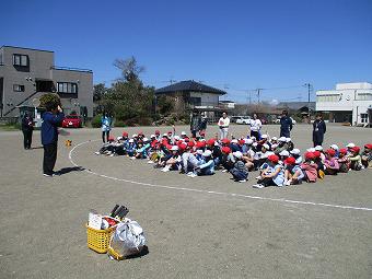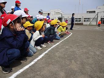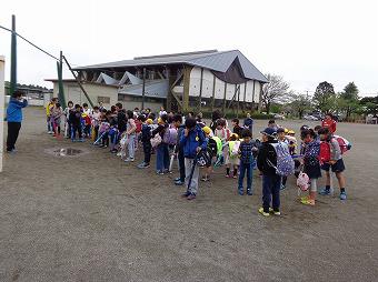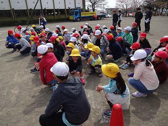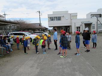 今年度第1回の避難訓練を行いました。緊急地震速報が流れると、校内にいる子も校庭で遊んでいた子も、即座に身を守る体制を取りました。その後、第1避難場に速やかに集まりました。どの学年も真剣に訓練を受けていました。「おかしもち」「自分の命は自分で守る」ことを身をもって再確認することができました。