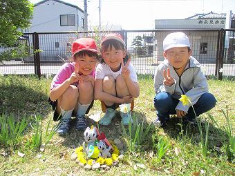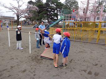 1年生が校庭を探検しました。目新しいものばかりに、どの子も大興奮!目を輝かせながら敷地内を回っていました。