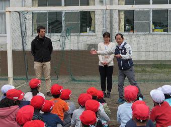 チュールと今年度のスローガン「チーム楡小スマイルリレー!」