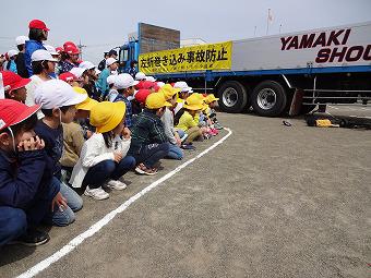 鹿沼市交通教育指導員さん、南押原駐在さん、トラック協会の方をおよびして交通安全教室を行いました。トラック左折巻き込み実験では、その現実感にどの子も真剣な表情で見守っていました。模擬信号による横断練習も、登校班長を中心に真剣に行っていました。今年度も、みんなで気を付けながら、交通事故ゼロを目指す決意を新たにしました。ご指導いただきました皆さん、大変ありがとうございました。