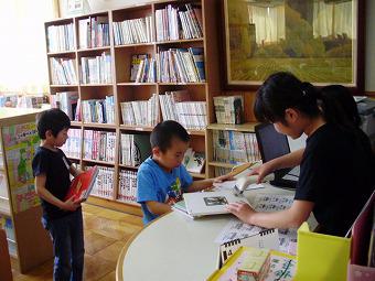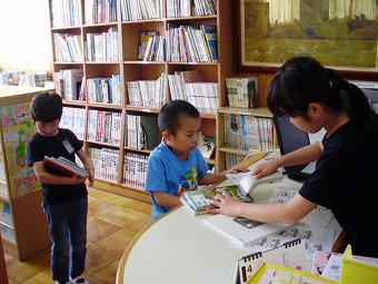 1年生が初めて図書室で本を借りました。上学年の図書委員に借り方を教わって、自分で本を選んで。これから学校図書室と楽しい付き合いが始まります。
