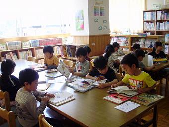 1年生が初めての読書カードづくりを行いました。自分の読んだ本を友達に紹介する活動です。1年生もみんな本が大好きです。さっそく本を貸し出して、読書カードづくりに励んでいました。