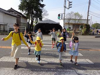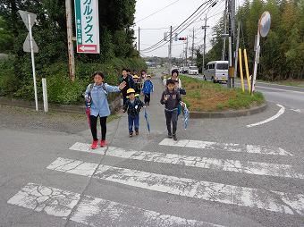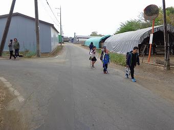 今日も藤江方面の登校についていきました。みんな、遠い道のりを毎日、がんばって歩いて登校しています。東北自動車道の下を通り、県道宇都宮楡木線を歩き、学校を目指します。上学年は下学年の面倒をよく見ながら、安全に気を付けながら登校しています。