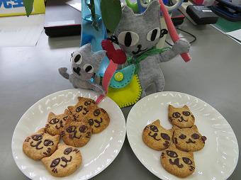 保護者の方から、お子さんと一緒に作ったチュールクッキーをいただきました。とても可愛らしいクッキーで、チュールもとても喜んでいました。