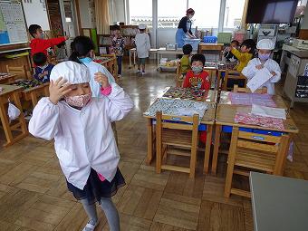 健康委員会の給食後の片付けの仕事が本格的に始まりました。どの子も自主的に一生懸命取り組んでいました。