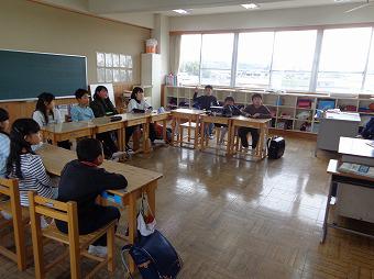 入学式後、在校生と入学生の対面式を行いました。保護者の方も交えて、登校班ごとに集まり、登校の約束などを話し合いました。在校生は優しく入学生を迎え入れていました。