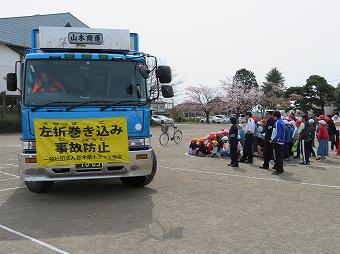 鹿沼市交通教育指導員さん、南押原駐在さん、トラック協会の方をおよびして交通安全教室を行いました。トラック左折巻き込み実験では、その現実感にどの子も真剣な表情で見守っていました。模擬信号による横断練習も、登校班長を中心に真剣に行っていました。今年度も、みんなで気を付けながら、交通事故ゼロを目指す決意を新たにしました。ご指導いただきました皆さん、大変ありがとうございました。
