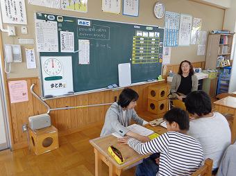 2時間目は、1年生2年生どちらも算数の学習を行いました。1年生にとっては初めての算数です。1年生はかずのかぞえ方、2年生は表のかき方を学習しました。どちらの学年も活発に意見を出しながら、一生懸命学んでいました。