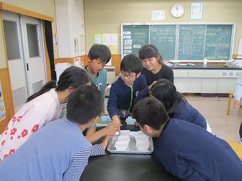 5年生が理科の学習で「発芽の条件」の学習をしました。どのような条件が重なると発芽するかを調べる学習です。いくつかの条件を予想して、実際にその条件に合った環境で観察します。どの班も、どんな条件なら発芽するか、を真剣に議論していました。