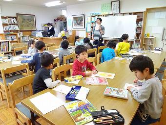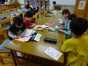 1年生が初めての読書カードづくりを行いました。自分の読んだ本を友達に紹介する活動です。1年生もみんな本が大好きです。さっそく本を貸し出して、読書カードづくりに励んでいました。