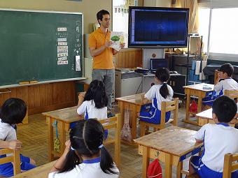 2年生が外国語活動を行いました。ALTの先生と一緒にあいさつを練習したり、アルファベトの発音を練習したりしました。どの子もとても楽しそうに英語に親しんでいました。