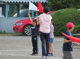 業間の運動会練習は全校による応援合戦でした。赤白団長がリーダーシップを取り、どちらの組も、白熱した応援を繰り広げました。本番がとても楽しみです。