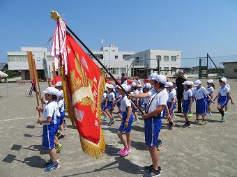 業間に運動会全体練習を行いました。入場から開会式の流れの練習です。高学年を中心に、どの子も一生懸命、自分の役割を果たしていました。