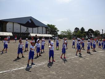 運動会の全体練習を行いました。入場、開会式、ラジオ体操、そして閉会式。2回目ということもあり、さらに集団行動が磨かれ、それぞれの係も責任をもって行動しています。どの子も真剣に一生懸命取り組んでいました。