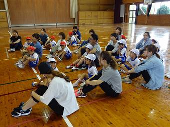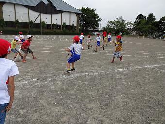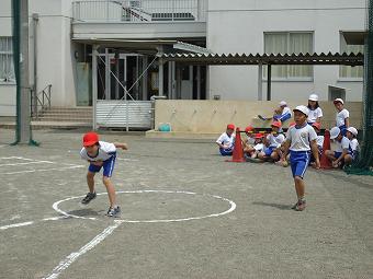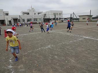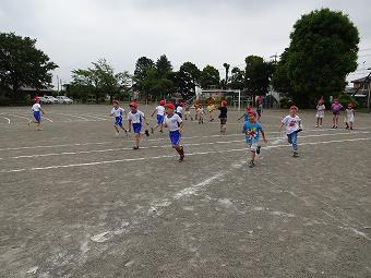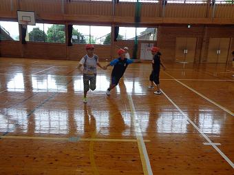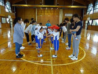 6年生がお手伝いをして、1年生がシャトルランを行いました。新体力テストの種目です。1年生は初めて行うシャトルランに、一生懸命取り組み、6年生は1年生のお世話を一生懸命行いました。シャトルランが終わると、1年生と6年でてつなぎ鬼をやりました。みんなとても楽しそうでした。