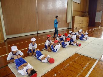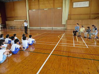校内に不審者が入り込んだことを想定した避難訓練をスクールサポーター、駐在所の方を講師にお招きして行いました。職員は不審者を取り押さえる方法、子供たちは「いかのおすし」の確認、不審者に出会った時の対処を教わりました。「自分の命は自分で守る」このことを再確認できた活動でした。スクールサポーター、駐在所の方、大変お世話になりました。