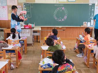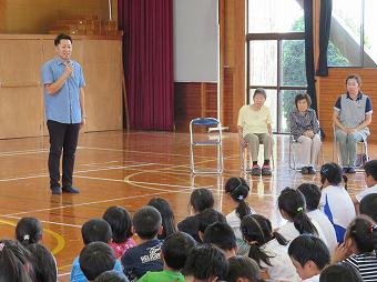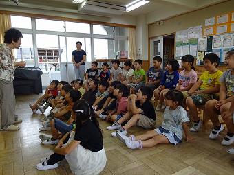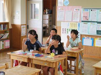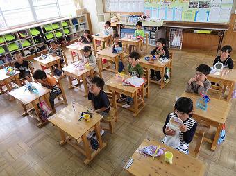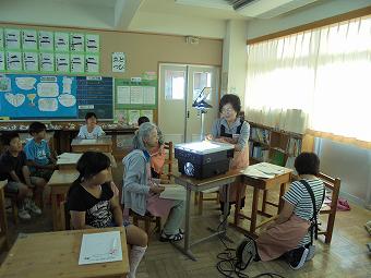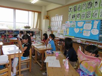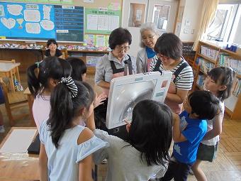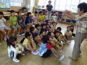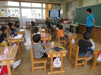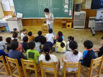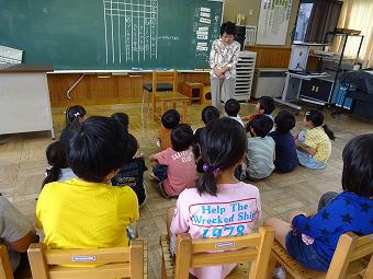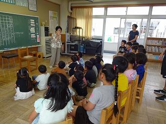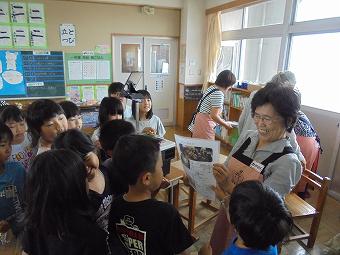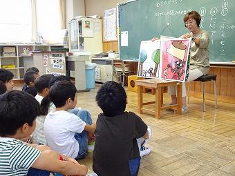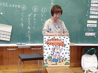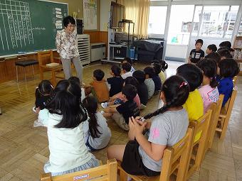 1,2年生教室で、KLVの方による読み聞かせがありました。千葉省三作品の中から「たばこを吸ったお月様」の話を語るように読んでくださいました。千葉省三の不思議な世界を、目を輝かせながら楽しそうに聴いていました。