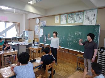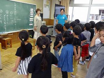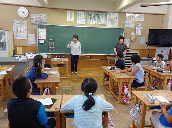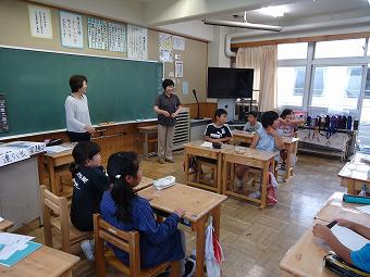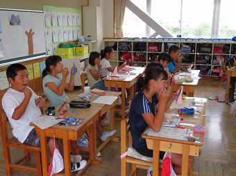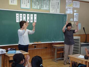 お二人の講師の方をお迎えして、4年生が「手話教室」を行いました。あいさつや自分の名前を手話で伝える方法を教わったり、実際にやってみたりしました。どの子も意欲的に手話でのコミュニケーションを楽しんでいました。