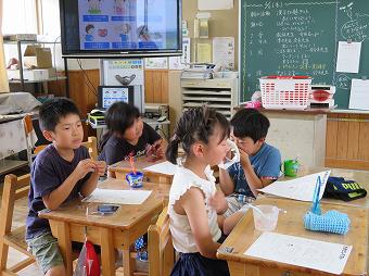 4年生が学級活動で「歯磨き指導」を行いました。テスターで自分の歯の様子について調べたり、養護教諭から正しい歯磨きの仕方を教わったりしました。どの子も歯の大切さを再確認できたようでした。